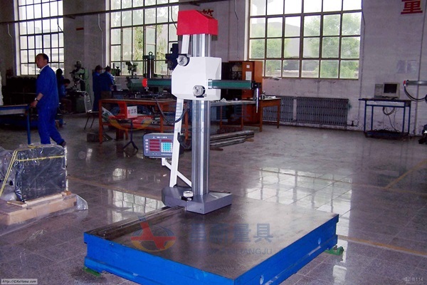 ①將被測零件的基準面與鑄鐵平板工作面貼合,移動尺框量爪,使卡爪端部與平板接觸,檢查高度尺的零位是否正確;